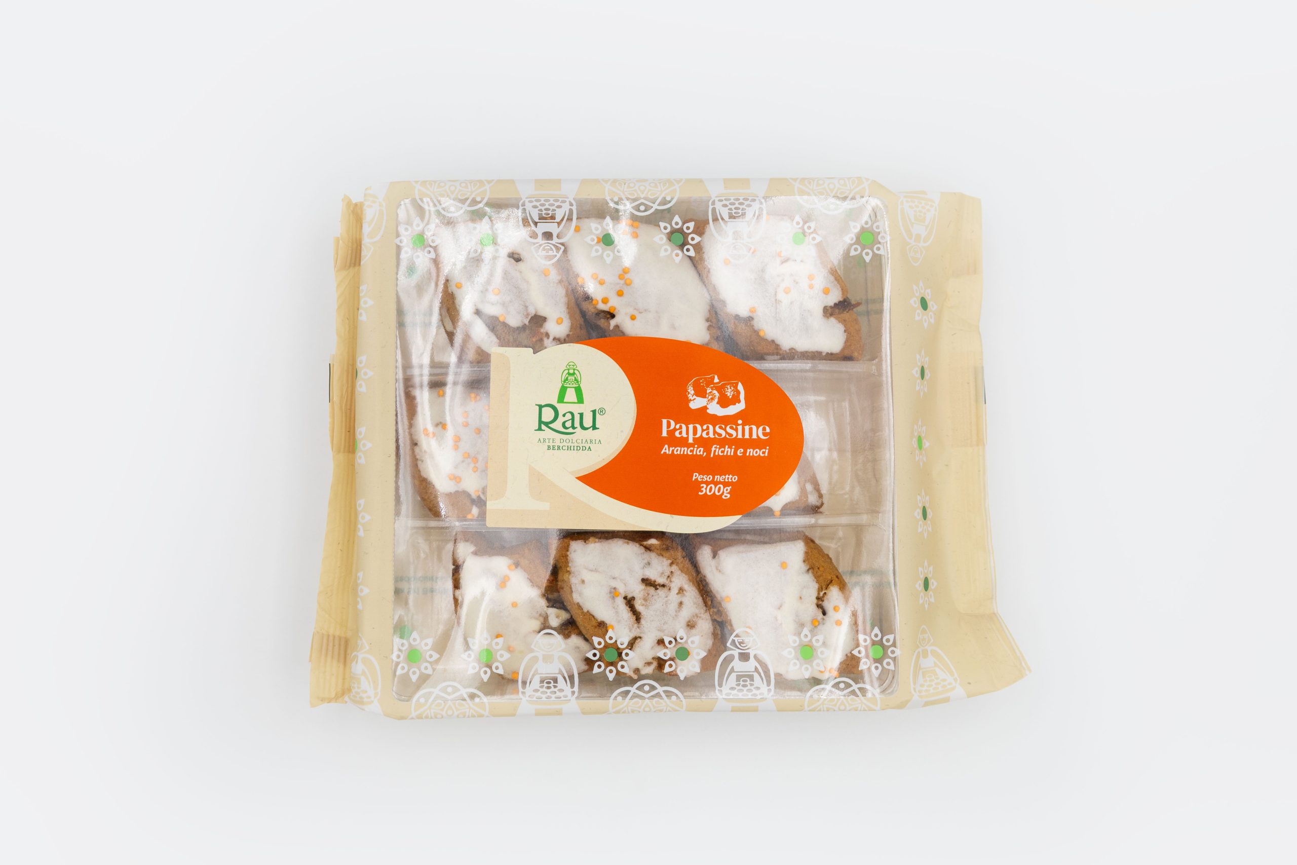 Ingredienti: semolato di grano duro, passata di mela cotogna (zucchero di canna, purea di mela cotogna), noci, zucchero, fichi secchi, uova, strutto, burro (latte), scorza di arancio 5,5% (scorza arancio da fresco, saccarosio, sciroppo di glucosio-fruttosio,; correttore di acidità: E330), zucchero a velo (zucchero, amido di mais), scorza d’arancio filetti 3% ( scorza d’arancio, sciroppo di glucosio-fruttosio, zucchero, succo limone concentrato); albume d’uovo, agente lievitante: E503, E450i, E 500ii, amido di frumento, E170i; addensante: E322 (da soia); sale, aromi.
